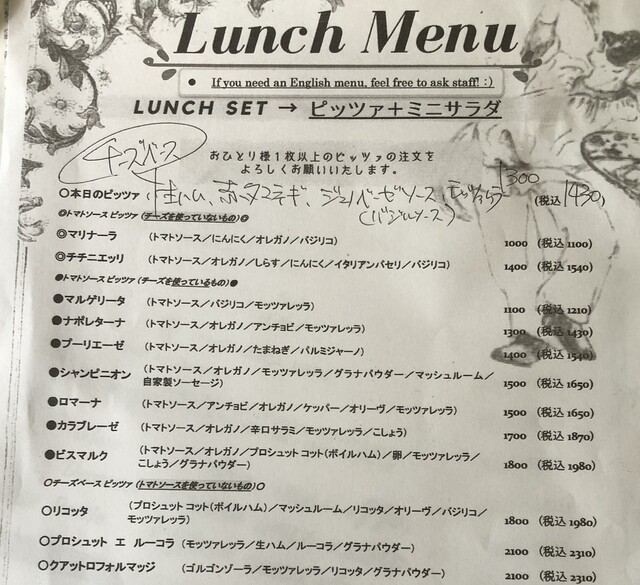 ランチマルゲリータ(ミニサラダ付き):1210円