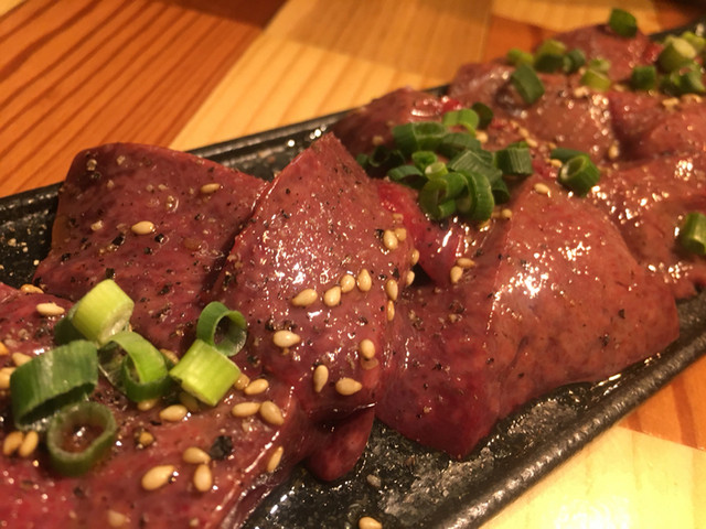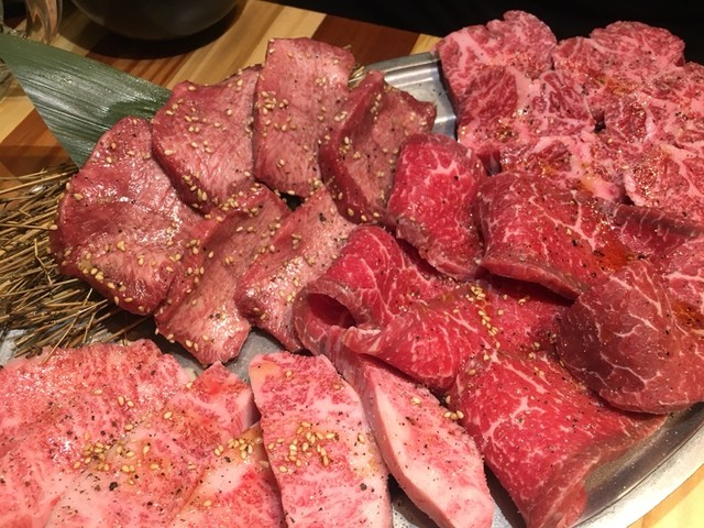 肉は極上の厚切りタンからカルビ、シンシン、たてバラ、カイノミ、ホルモン盛り合わせ、ハツ刺し、レバー、カルビ、ハラミ、ロースなどかなりの肉が提供されます。