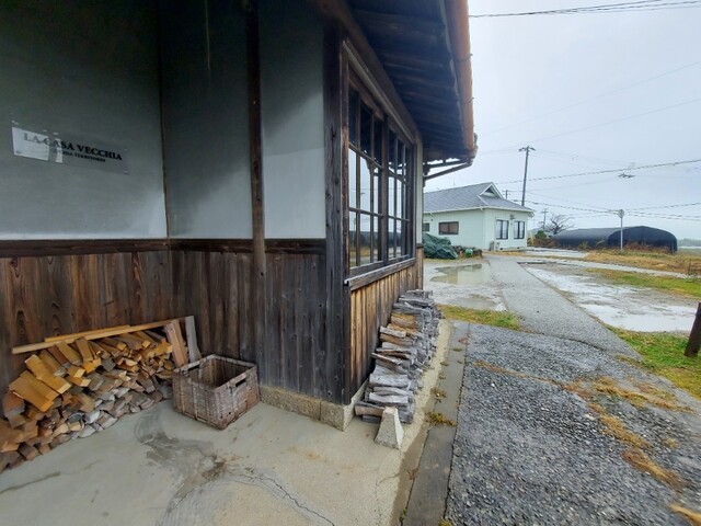 集落の、元農道のような坂道を車で上る。最後、敷地に入るコーナーだけ、切返しが必要かな。