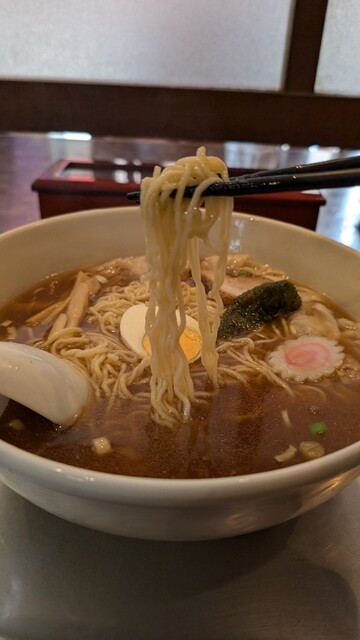 ラーメン自体はあっさりしていますが、しっかりとした煮干しの風味が効いていて、飽きがこない味わいです。麺もコシがあり、小麦の香りが引き立つ美味しさ。さらに、ワンタンはつるつるとした滑らかな食感で、口の中でとろけるようでした。全体的にとても満足のいく一杯でした。