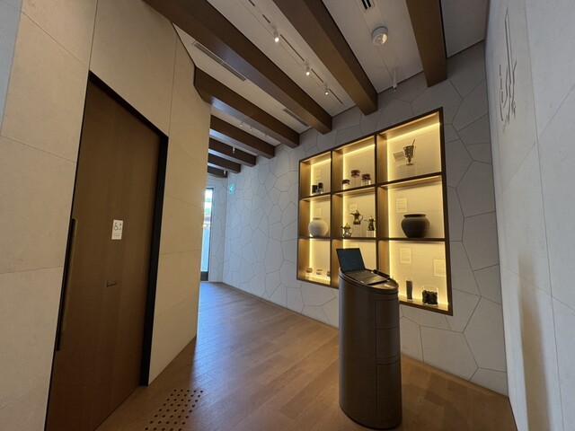 エントランスからラグジュアリーな雰囲気。おもてなしの象徴とされる、サウジコーヒーをいただいて中へ。テラス席もありますが、中のゆったりとした席でラッキーでした。