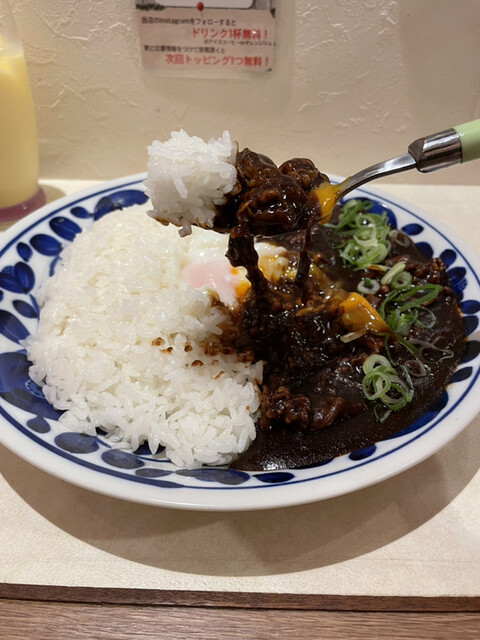 今回は定番メニューから"オムライスカレー"と本日の特別カレー"牛しゃぶ&淡路玉葱&青葱カレー+温玉トッピング"を注文!
