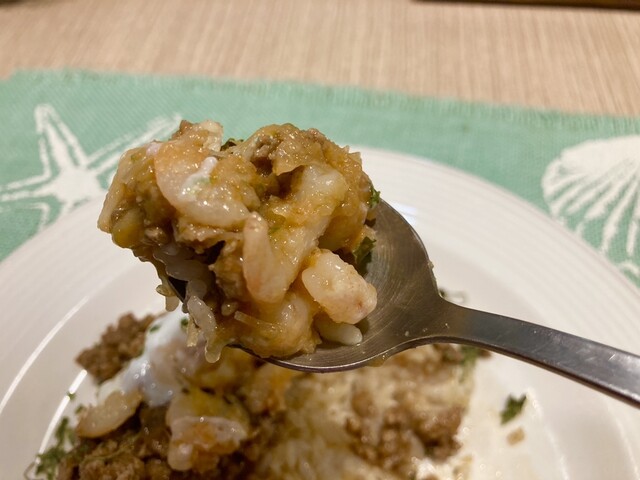 薬膳キーマカレー海老のたるたる添え