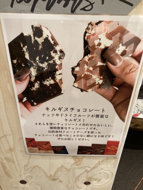 ショップでキルギスの伝統のクルートチーズのチョコやパンデビスを買ったので