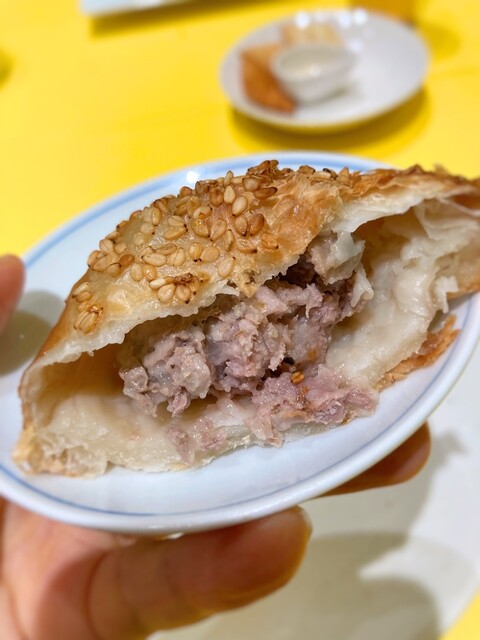 1番味がしっかり!三角のゴマがまぶさったパイ生地にスパイスと玉ねぎが入った羊のひき肉がぎゅっと入ってて、生地に少しチーズも感じる。