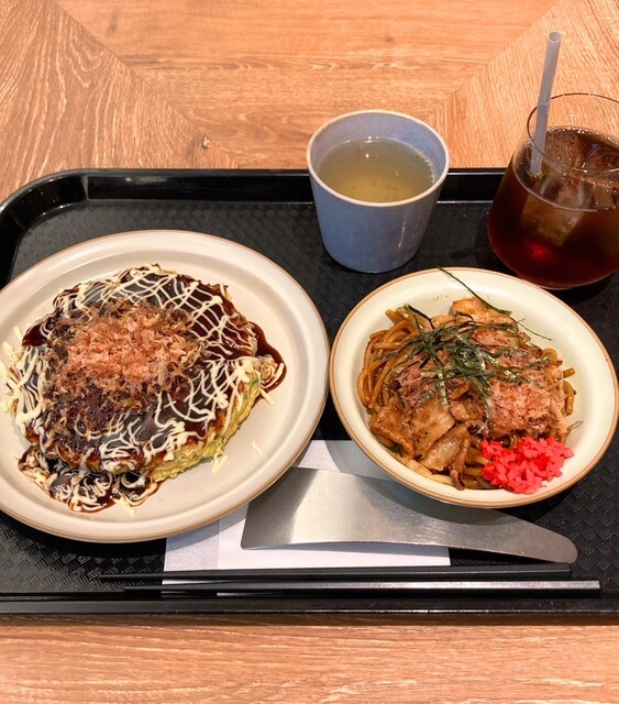 ちょうどお好み焼きと焼きそばが両方食べれるセットがあったのでそちらを注文!