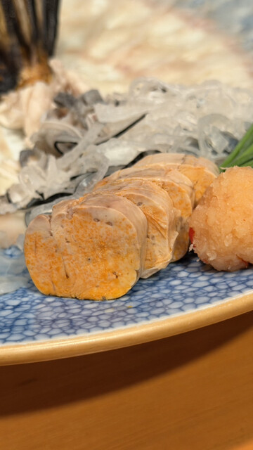 常磐の鮟鱇(あんこう)の肝は高瀬秘伝の食べ方で、刺身に浅葱と肝を絡めて食べれば絶品
