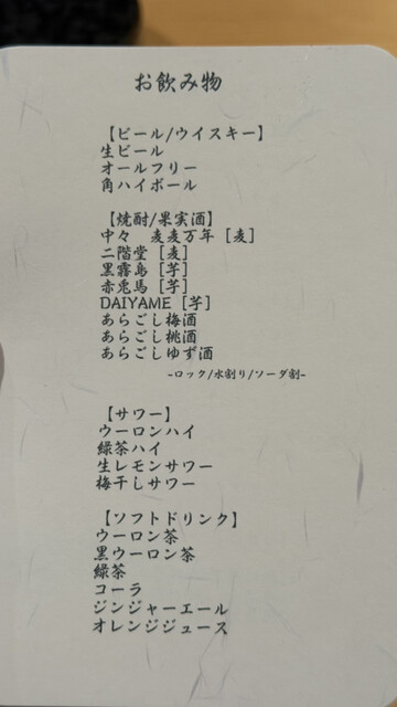 ビールもワインも焼酎も幅広い