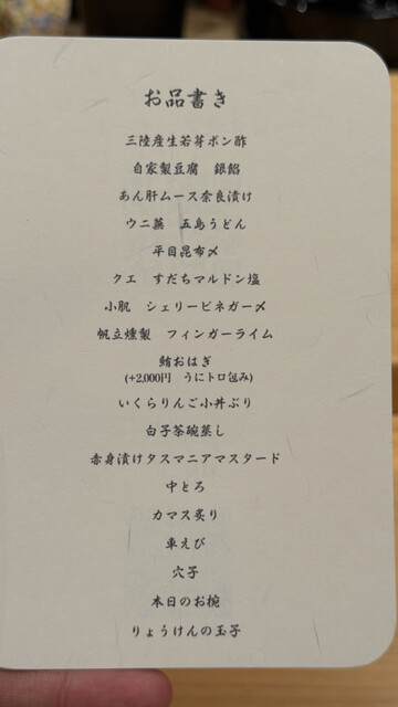 通常は鮪おはぎなんだけど+2,000円で変更可、ほとんどの方が変更していた