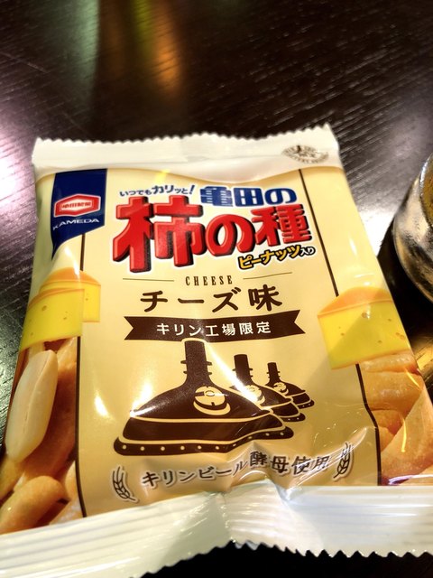 工場専用のチーズ味柿ピーも試飲会場併設の売店で販売しています。