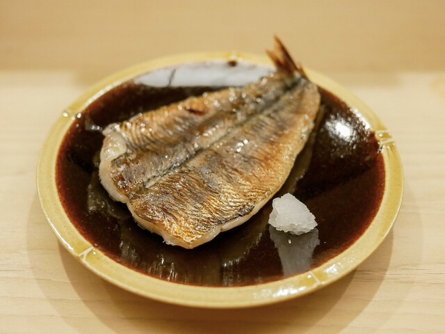 つまみに久しぶりに鰯の海苔巻きが登場。良い鰯がなかなか入らないので最近お目にかかってませんでしたが、やはり美味。煮たこもたこの食感をしっかり残した煮加減で加減。追加で出してもらったミル下の炙りもしっかり肝の部分が残っててうまし。