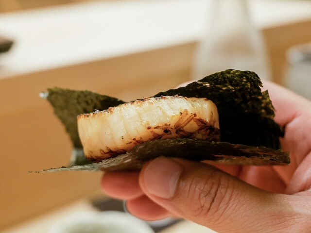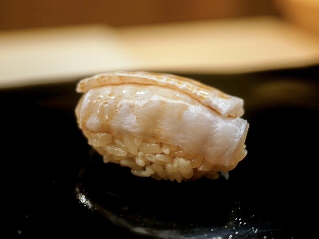 この日の白眉は赤貝のひものにぎり。ひもきゅう巻きや軍艦で食べることはあっても紐だけをにぎりで食べることはなかなかないけど、あえてにぎりに。親方曰く、ひもの状態がとても良いのでにぎりで出してみましたとのこと。最高でした。