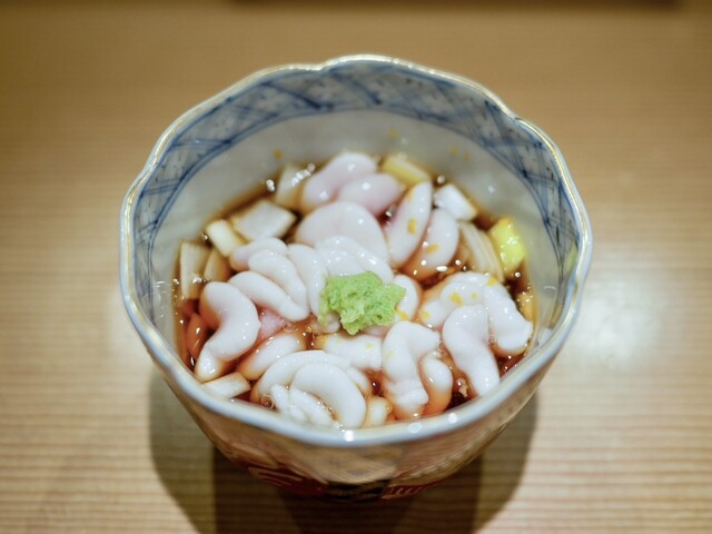 今年最初の天本さん。寒い時期になって魚種も豊富に揃うこともあってか、この日はにぎり多めで16貫(普段は12-13貫ほど)。その中には超久しぶりの激レアのブドウエビも。年明けから運が良いです。