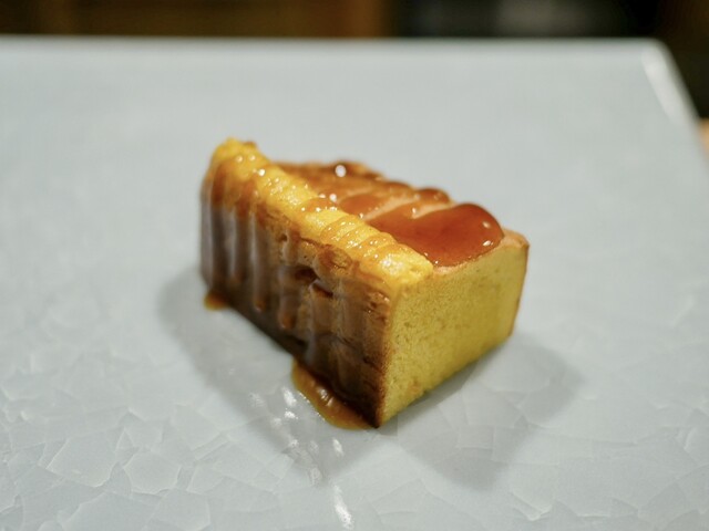 つまみの中ではニタリクジラの尾の身のたたきがこの日のハイライト。クジラの身に熱が入ることで脂が少し溶けてなんとも官能的な食感と甘みが口いっぱいに広がります。