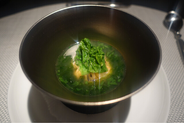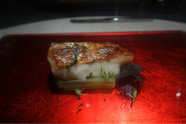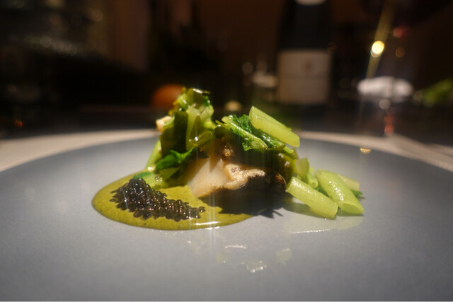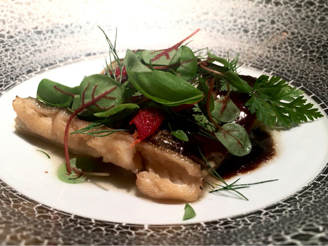 2016/10_クエとフォアグラ ほうれん草と芽ネギを入れたバターソース