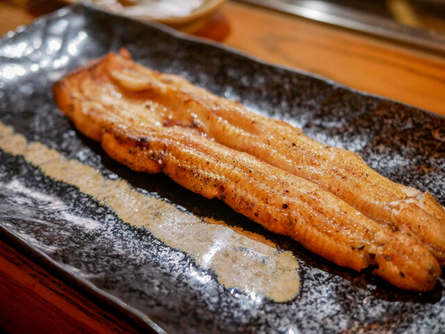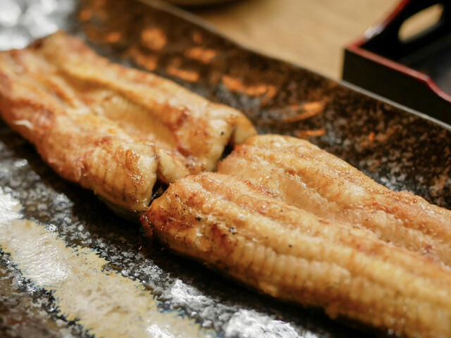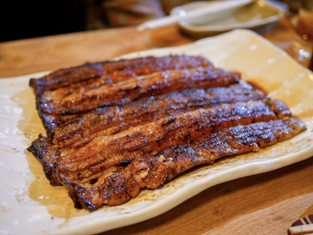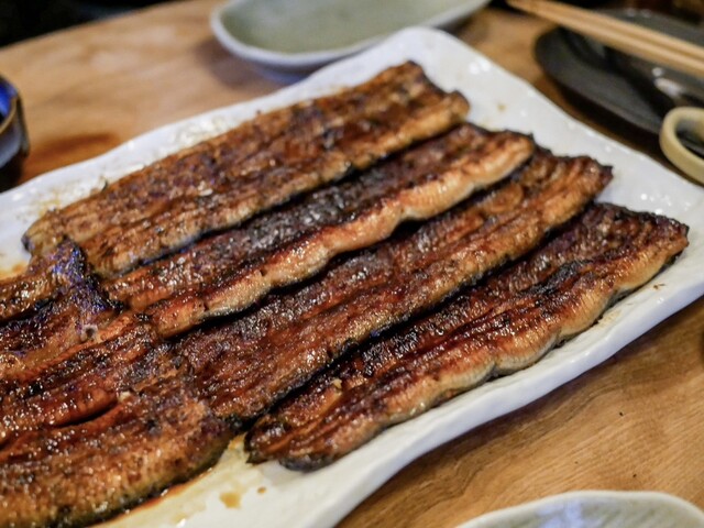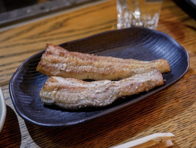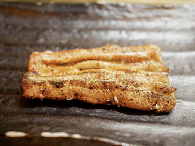 串が終わったら次は白焼き。ここでは白焼きに醤油をつけて食べるのはご法度ですが(笑)冗談抜きに圧倒的に塩で食べるのがうまいです。あとやはり鰻の味がダイレクトにわかるぶん、白焼きは天然の方が美味しく感じられることが多いですね。ただし、個体差あるので大ハズレはないまでもたまに「あれ?」というのも正直あります。でもこれが鰻のおもしろさですね。
