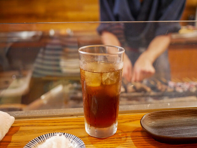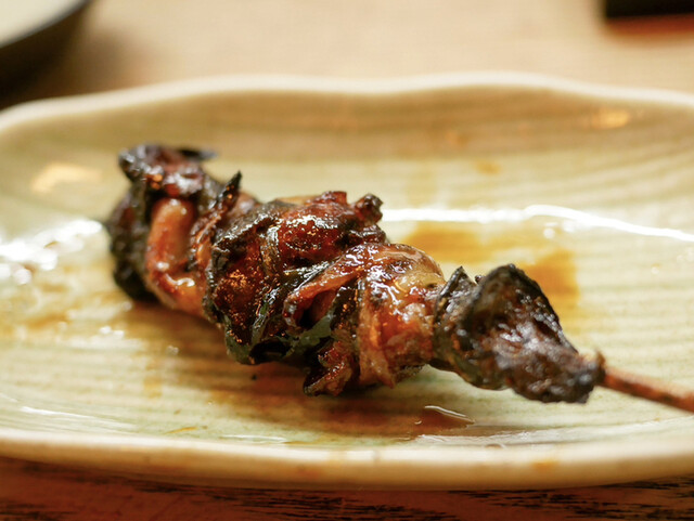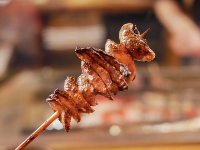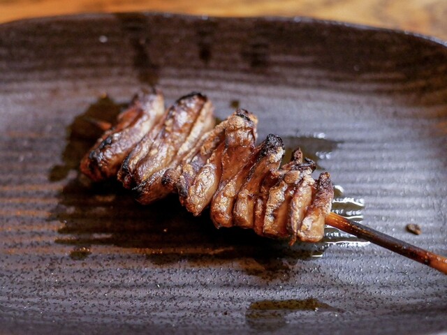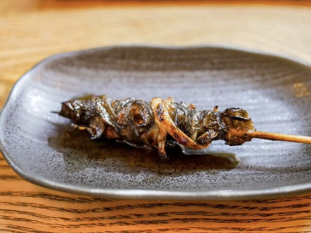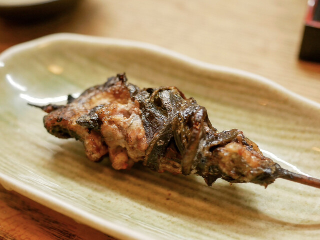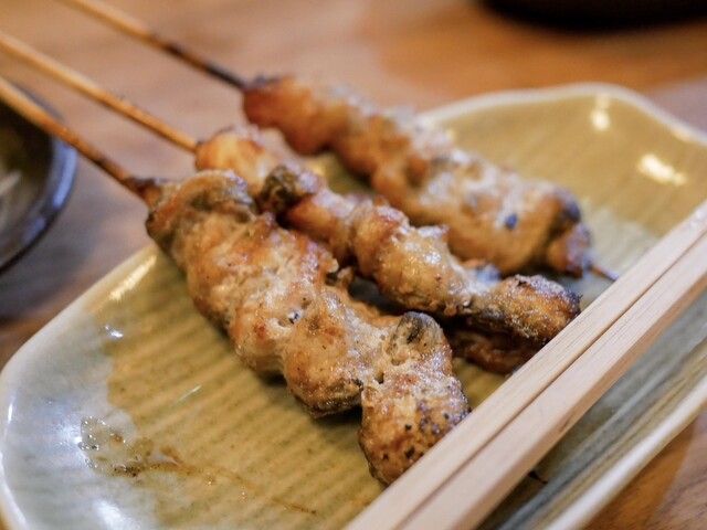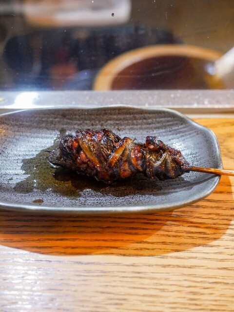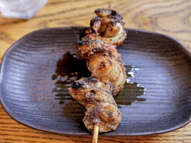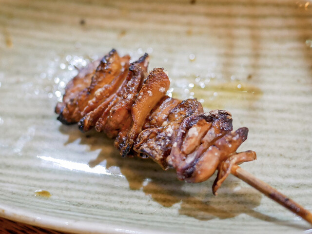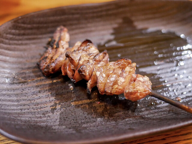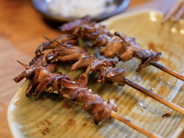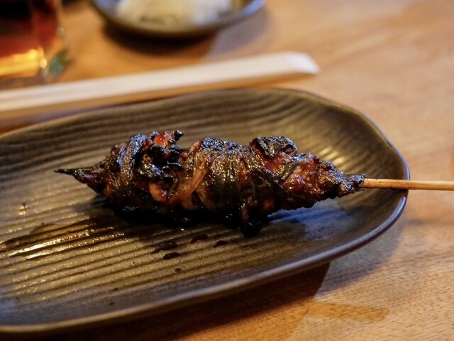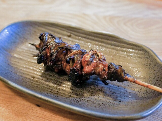 いつものようにお豆腐とお新香も頼んで、串焼きからスタート。串は大体5、6本。天然の肝とかは全員分の用意ができないので、お客さんによって微妙に串の内容も変わります。