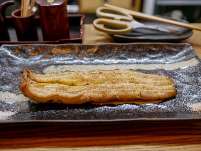 この日もいつものように天然と養殖の食べ比べ。天然は熊本の天草産。2人で白焼きは天然を半尾と養殖を1尾、蒲焼きは天然を半尾と養殖を2尾で注文。