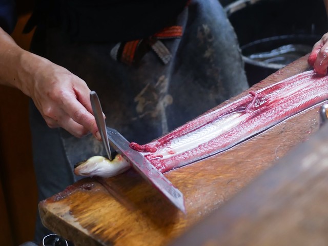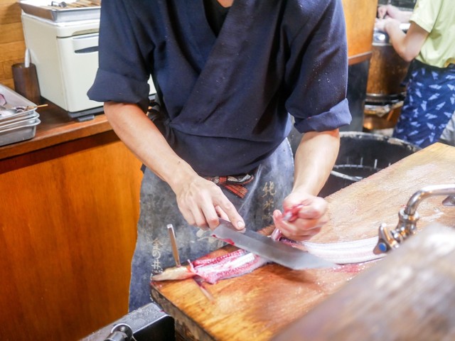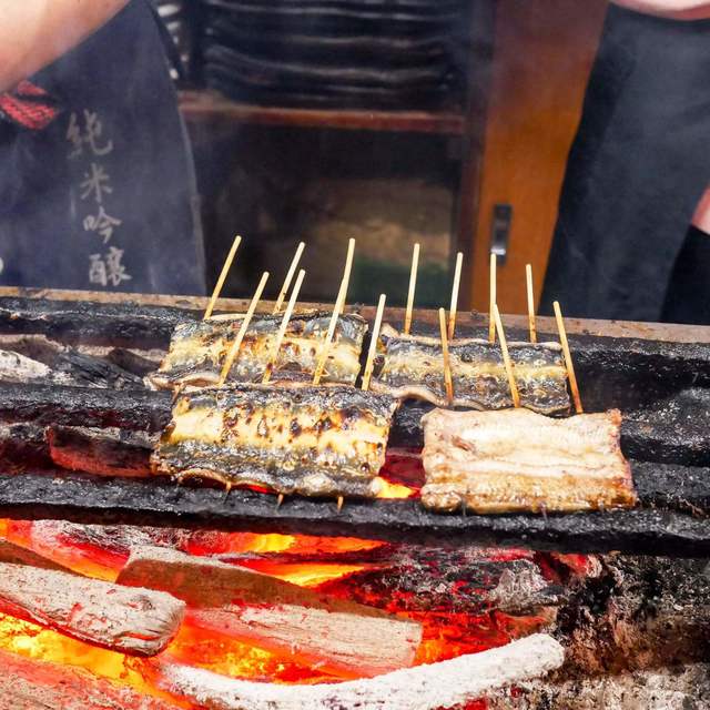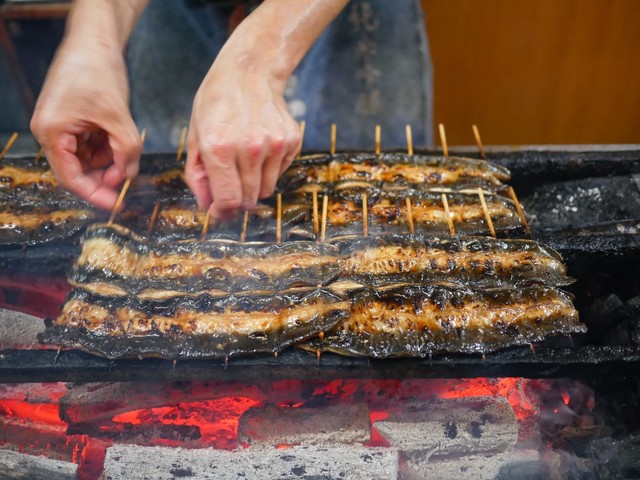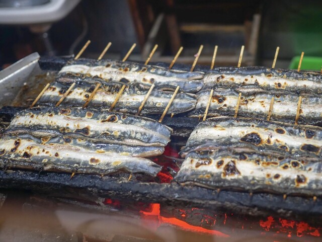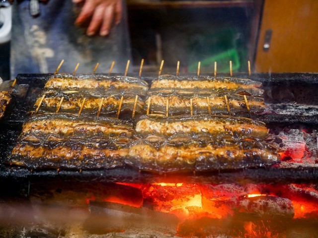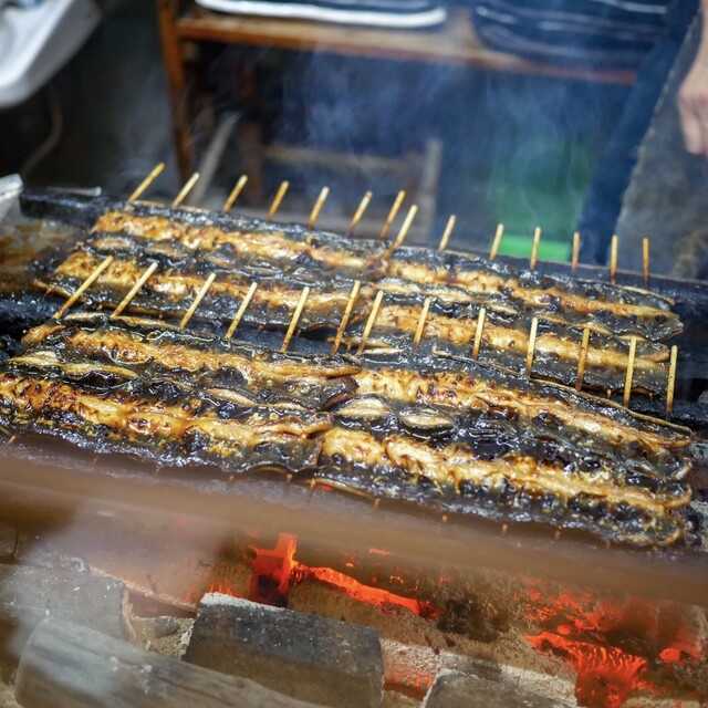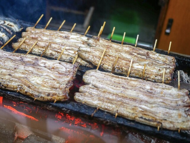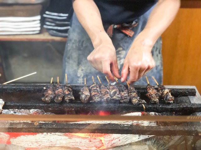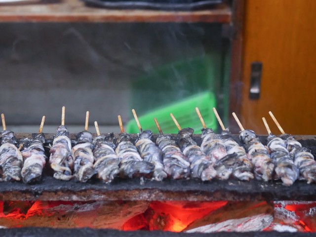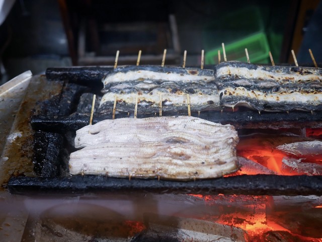 目の前で裂いたのをすぐに串打って焼いてくれます。