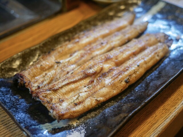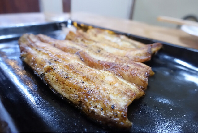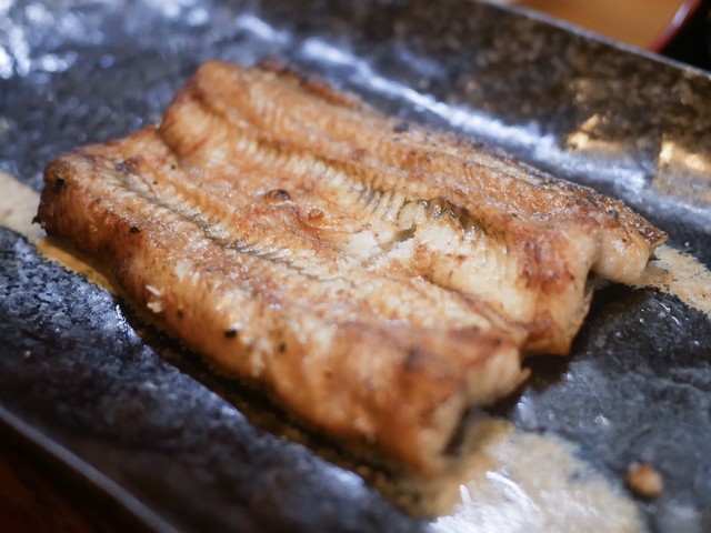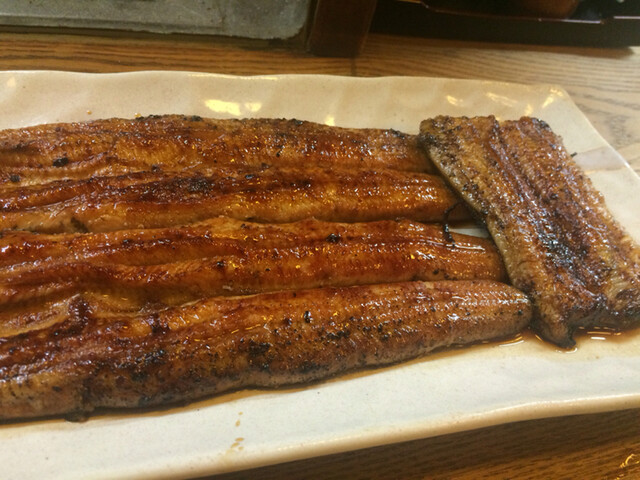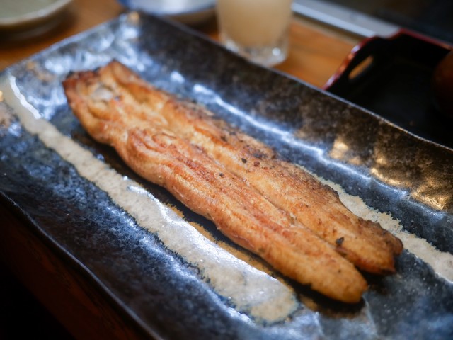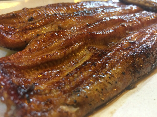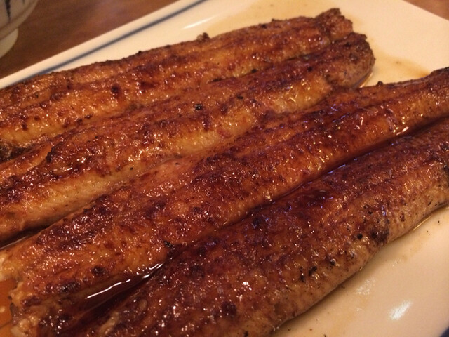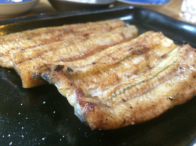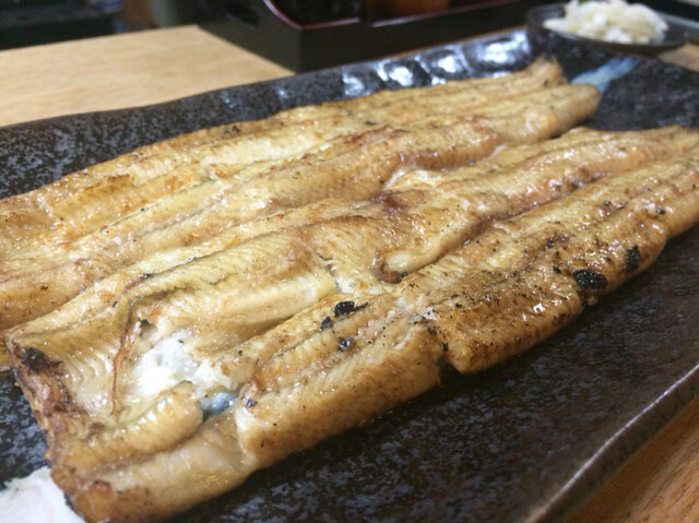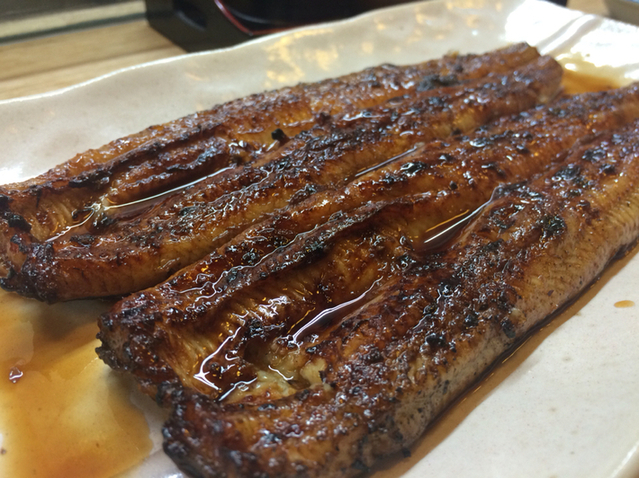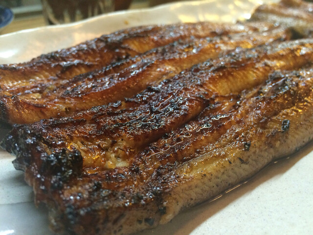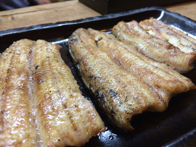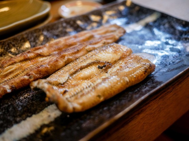白焼き食べ比べ(手前が養殖で奥が天然)