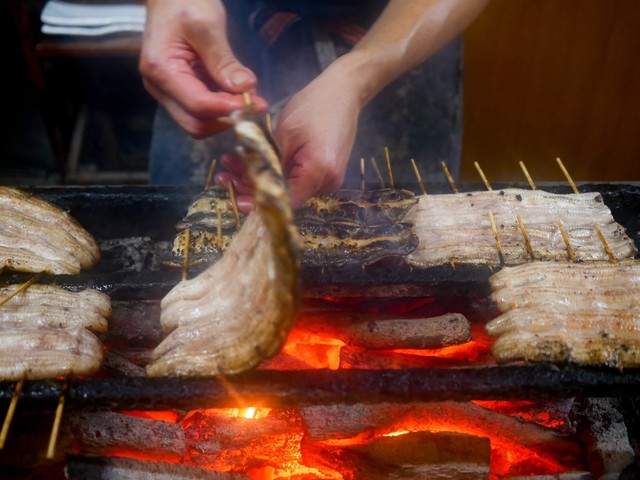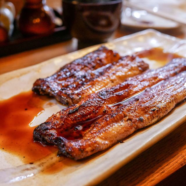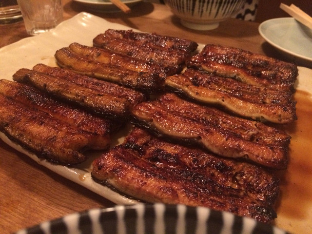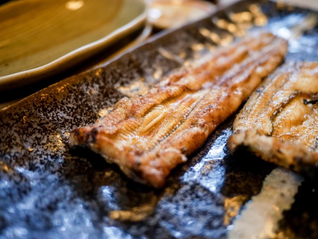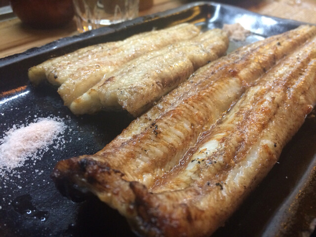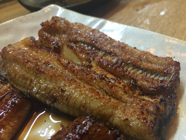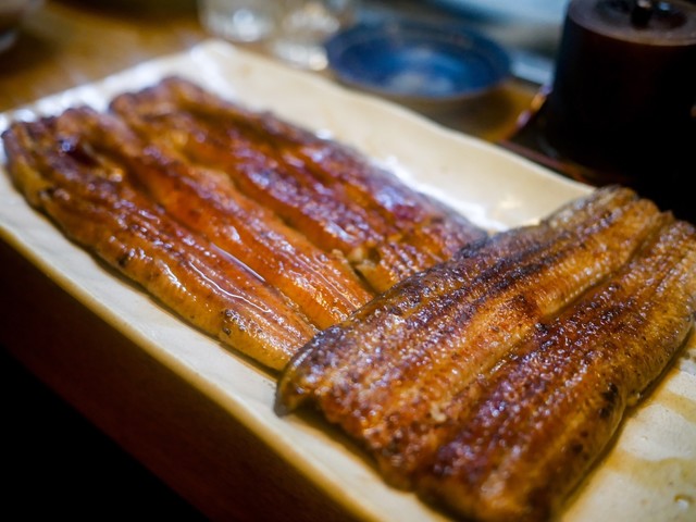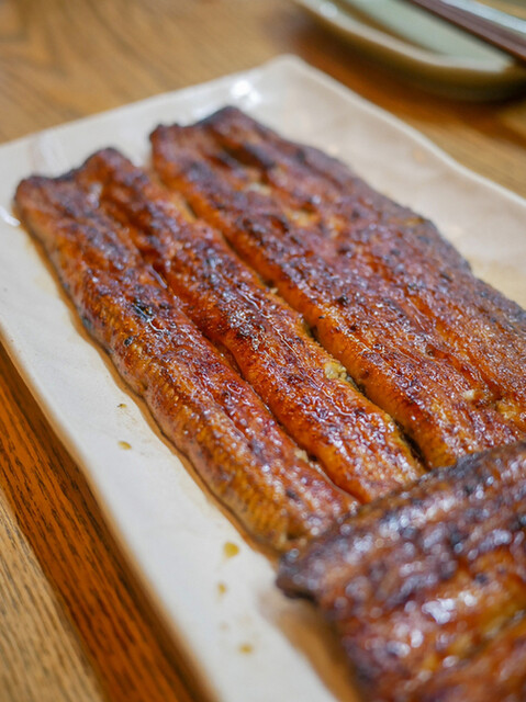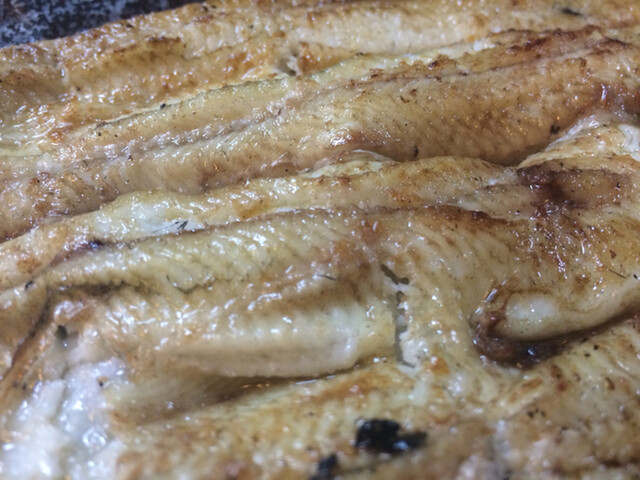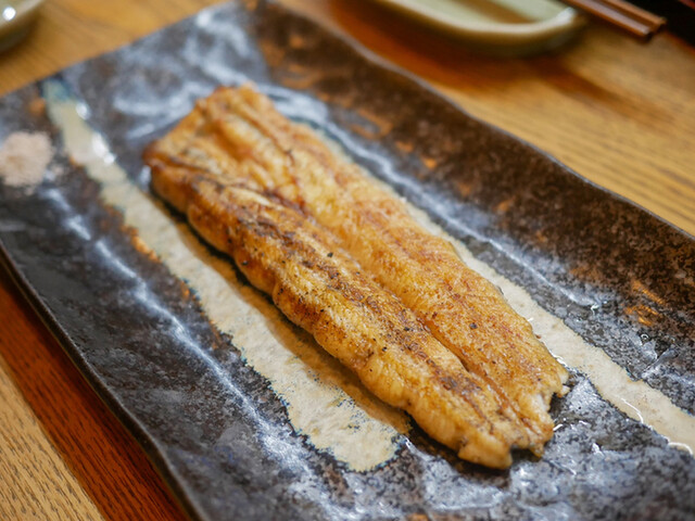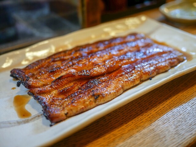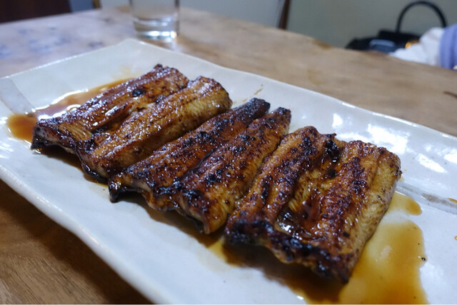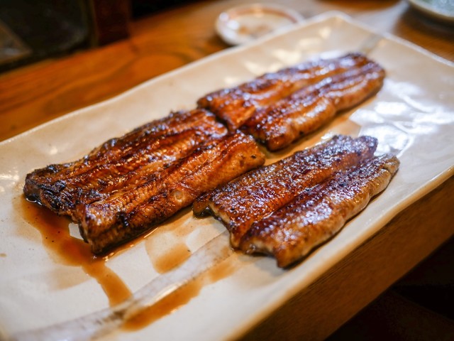白焼き食べ比べ(手前が養殖で奥が天然)