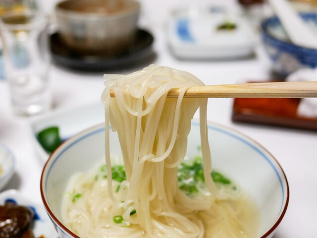 蛤鍋そのものは当然美味しいのですが、個人的には〆にいただく素麺が最高ですね。