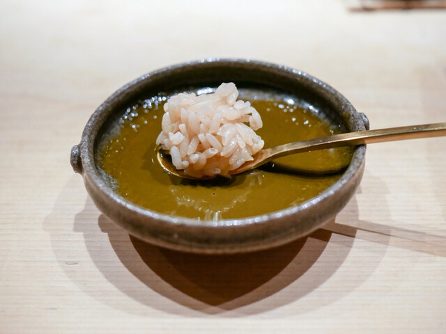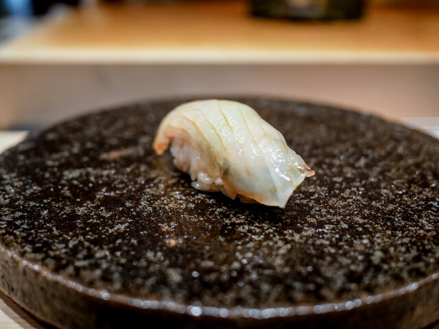 中でもこの日特に良かったのは車海老。大分の天然物だったようですが、とにかく火入れが最高。いわゆる半生にもかかわらず、甲殻類特有の臭み皆無。火を入れた時に出る甘みと生の食感の両方が同時に楽しめる1貫。今年食べた海老のにぎりの中でも最高のものでした。