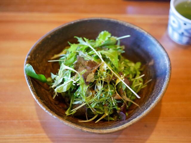 最初のサラダはメニュー上はサラダだけど、大体が野菜を使った料理。この日は地元の麻機蓮根に自家製の鰻味噌を添えて。美味。