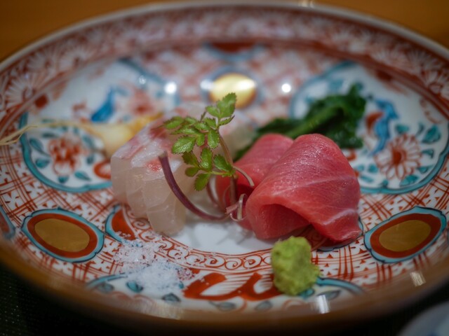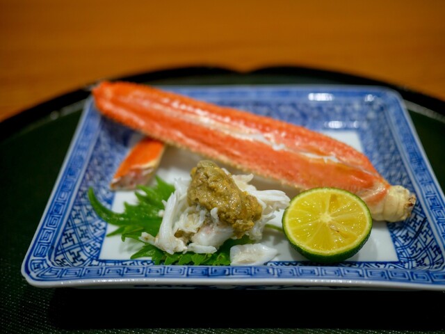 料理は昼は鰻料理だけで、夜はおまかせコースになって、最後に鰻が出る構成が基本のようです。時期的に今回の料理の中心は松葉蟹でした。そして、お造りに使う鯛の脱水処理に脱帽。この一皿だけでこのご主人は普通の料理人ではないな、ということが分かりました。