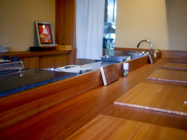 店は、平屋の一軒家を改装して使用しており、一見料亭かのような佇まい。聞くと以前は、とある地元の会社の社長宅だったようです。席はカウンター6席とテーブル席6席。テーブルは8人くらいまではいけそうでした。