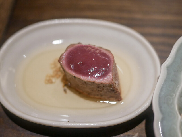 そして、先に結論を言うと、通常コースの完成度が更に増してて(出してくれたお肉も特別に良い肉だったのですが)、びっくりでした。もちろん、松茸は美味しかったですが、無理やりお肉合わせた料理にしなかったことが逆に良くて、お肉と松茸それぞれの良さを楽しめる内容になってました。
