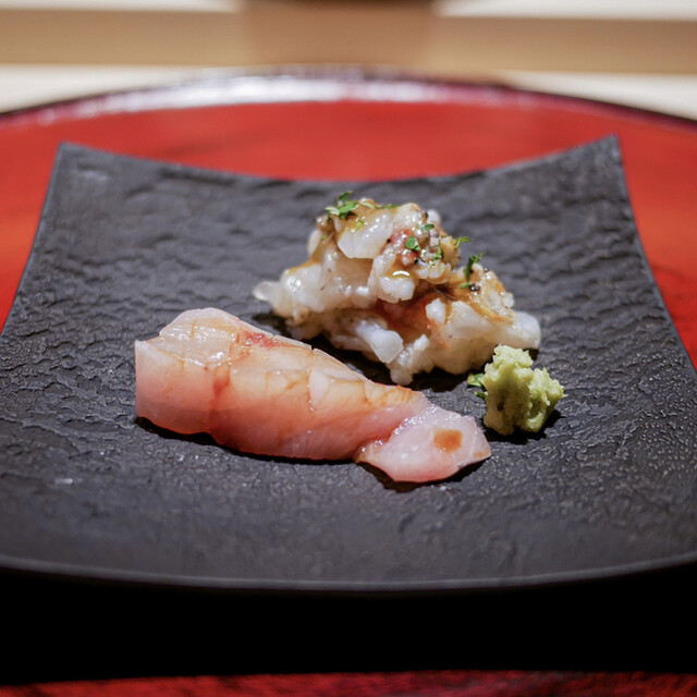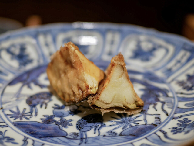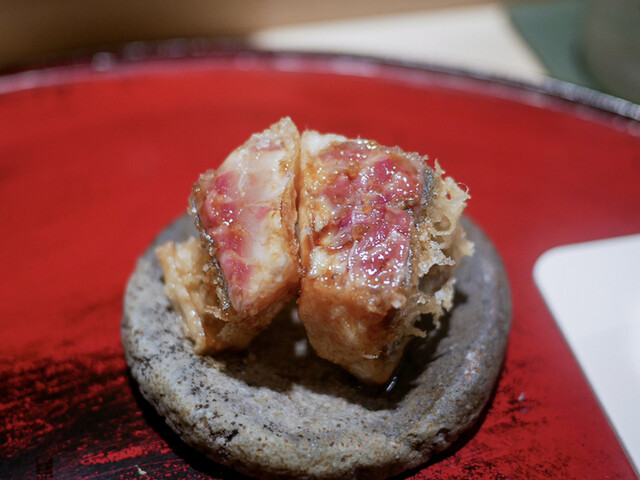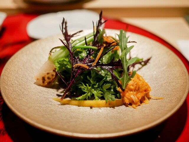 5月以来の成生さん。冬の静岡食材を堪能しました。白眉は駿河湾で揚がった立派なアカザエビ。生きた状態から捌き、手際よく衣をつけてさっとレアめに揚げて海老味噌のソースをつけていただきましたが、まさに命をいただいているという表現がぴったりの素晴らしい一品でした。