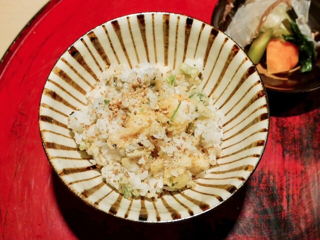 天ぷらは今回は特に小魚が多め。正直、どらもいわゆる高級魚ではないけど、この魚を仕入れられるようになるまでの過程は他の店には真似できない。野菜の天ぷらも相変わらずオリジナリティがあって大好き。