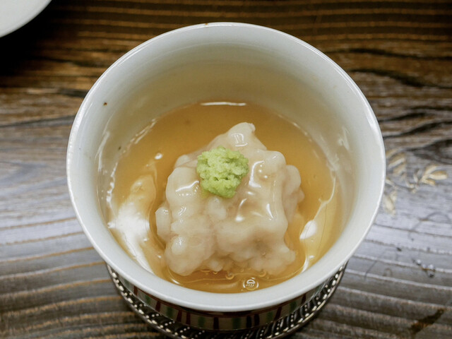 出汁は鰹と昆布、魚が多く出ることもあり、より昆布の甘味や香りが顔を出すお出汁で、塩味の使い方も絶妙。ありきたりの表現を使うと、とにかく素材感をとても大事にする料理なのですが、その旨さを引き出す技術が恐ろしく高い。