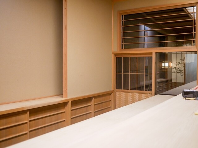 カウンターは横一列で、客席側が若干高くなっているように感じらます。カウンターから厨房を見ることはできませんが、出汁を取ったり、魚を切り分けたりする時などは目の前で調理をしてくれます。