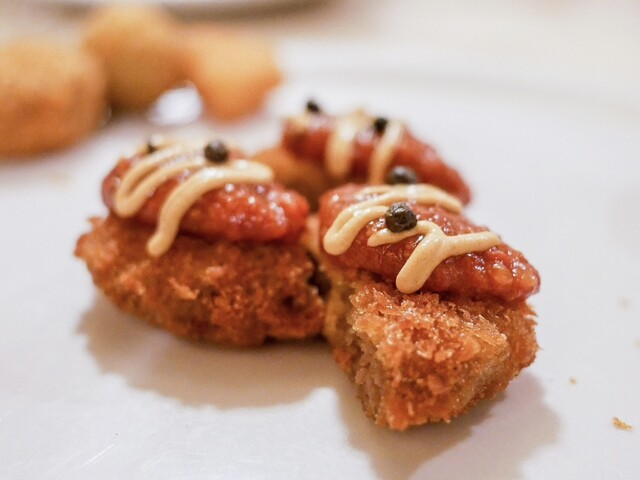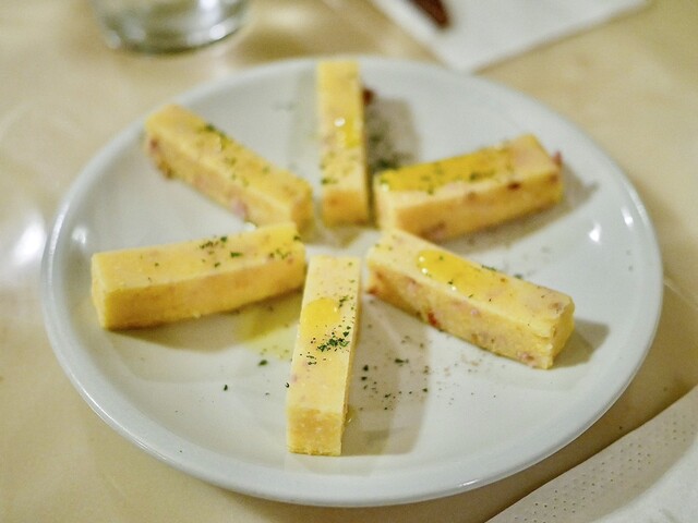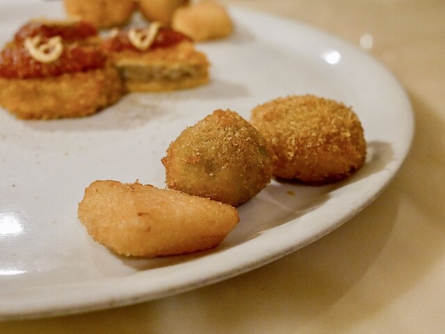 前半の前菜はワインに合うように比較的強めの味の料理が中心。良い素材を使ってしっかり作り込まれてて美味。後半のピッツァに向け徐々にテーブルが盛り上がっていく感じが楽しい。