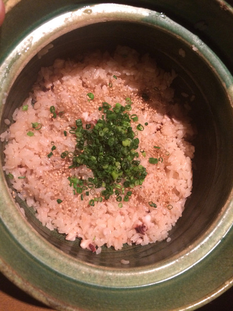 〆はタコの土鍋ご飯。全くベチャっとせずお米がつやつや〜。だいぶお腹もいっぱいなのに、もっと食べたいくらい美味しかったー。幸せ。