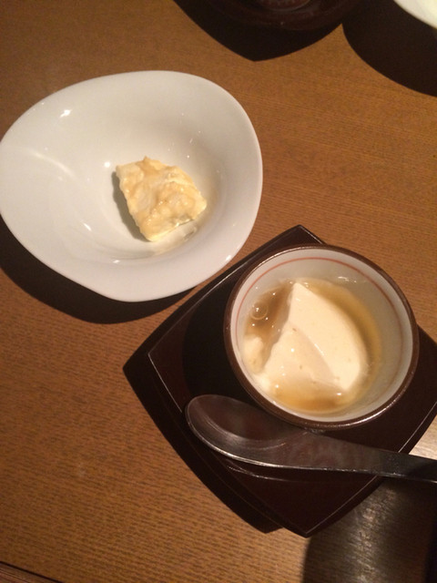 まず前菜。豆腐とクリームチーズ。酒に合う〜。爽やかだけどしっかり味わいがあり、最初からグッと掴まれる。