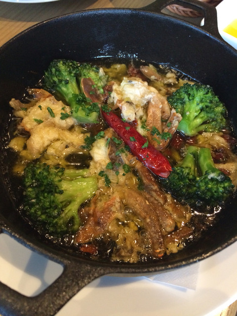 新メニューらしい温野菜、バジルソースが効いてて大正解。ソフトシェルクラブのアヒージョも旨い!