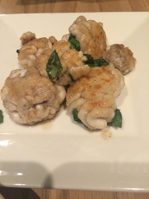 白子のグラタンを見て速攻頼んだら品切れ(涙。白子で他に何かできないか聞いてみたら、ムニエルを作ってくれた。嬉しい。