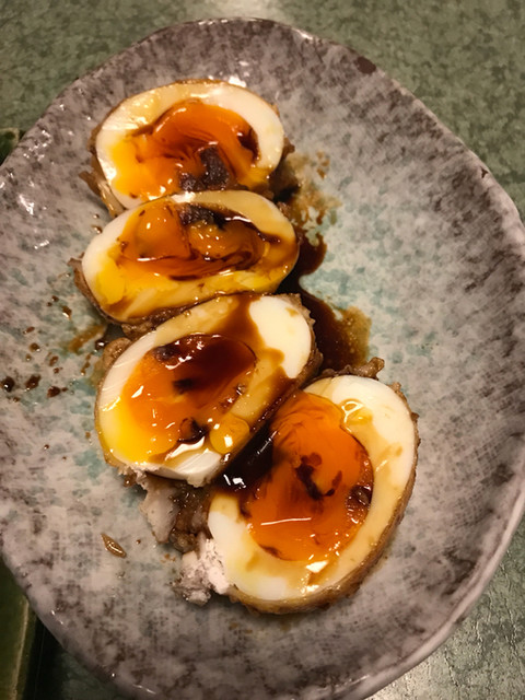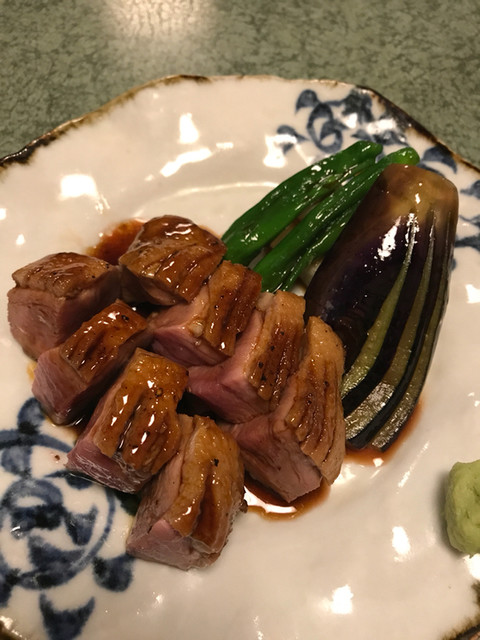 たまごや焼き鳥なども追加し、大将一押しの鴨焼きも。鴨旨い~。〆は蕎麦派と丼派に分かれて、私は天丼を半分。