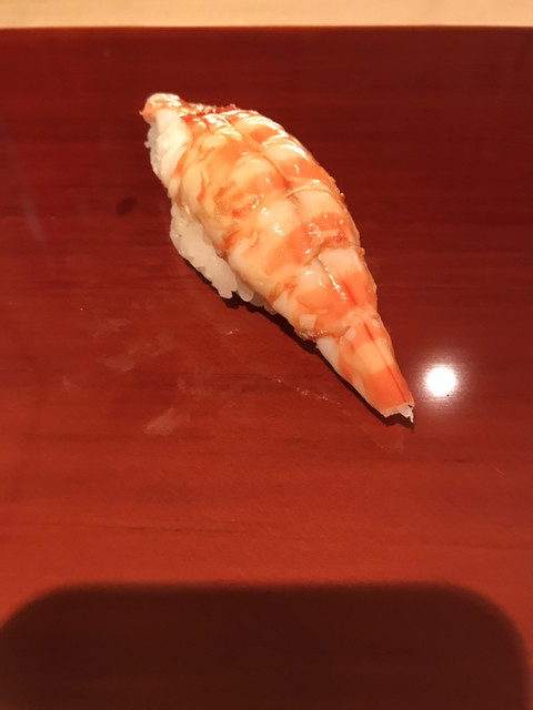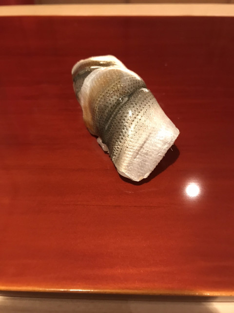 三越前から少し歩いた静かなエリアにある。雰囲気のある外観だが一見さんは入りづらいだろう。中はカウンター7席のみで、大将が中から寿司を出してくれる。