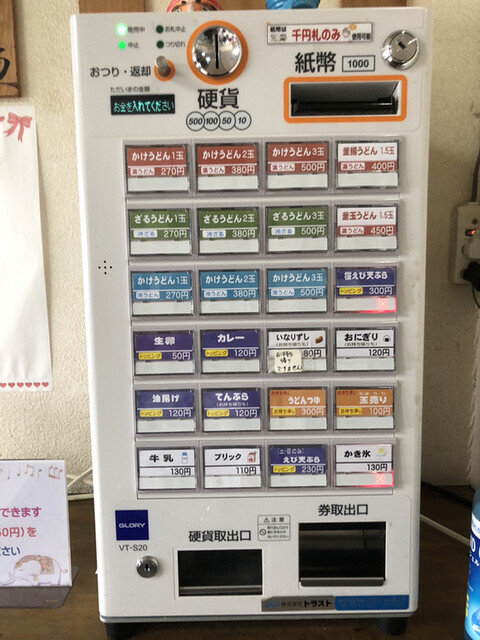 券売機 2021/08/14 かけうどん 1.5玉 270円+50円 いか下足 120円