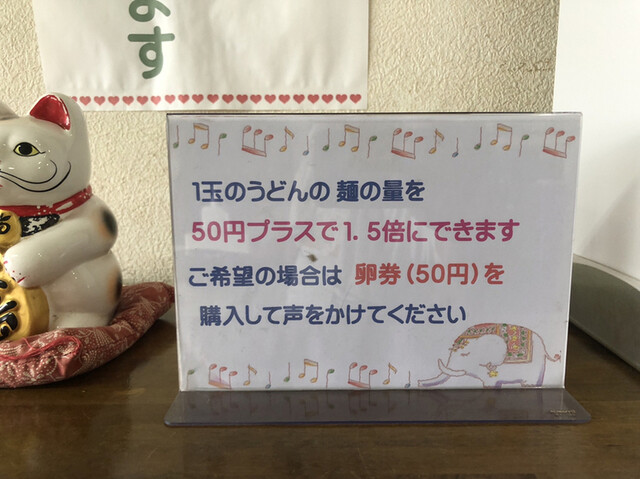トッピング生卵の食券が0.5玉の麺になる。大盛ってことだ。