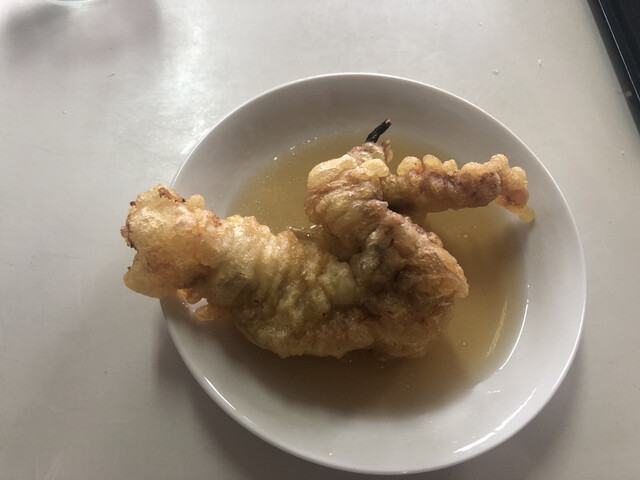 高級唐辛子 2022/12/20 温かけ2玉 (290円+120円) 410円 てんぷら 野菜かき揚げ 120円 てんぷら イカ下足 120円
