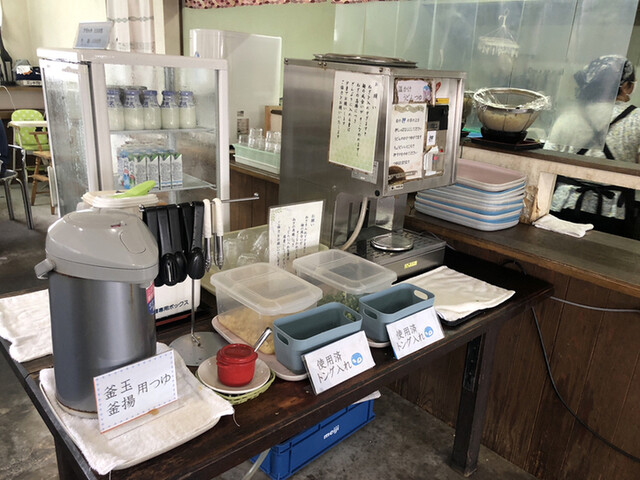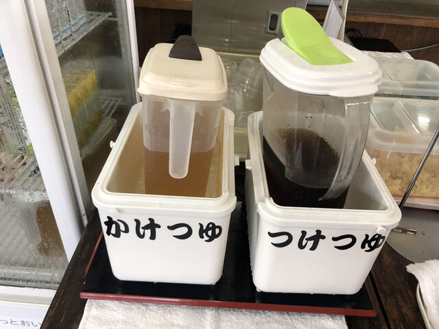 内観 受取口 出汁 ネギ 天かす等 2021/08/14 かけうどん 1.5玉 270円+50円 いか下足 120円