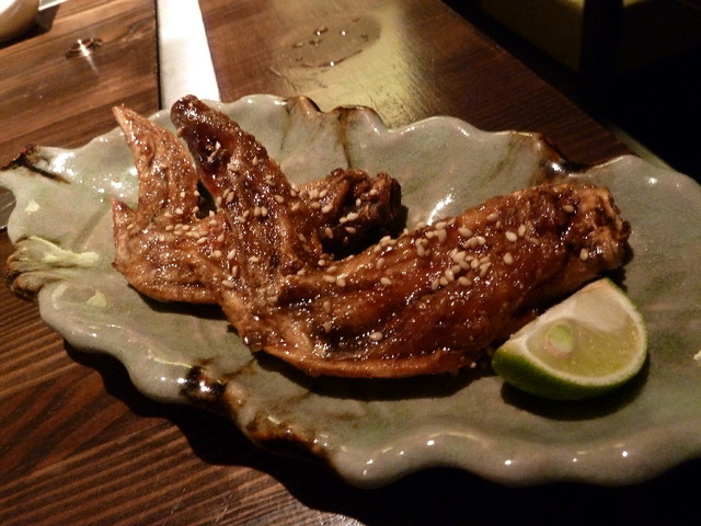 お次は手羽先。甘辛く味付けされてます(*^_^*)手羽先自体は ちょっとあっさりなんですけど、この甘辛いタレで 美味しいです。ゴマの香りも いいですね。
