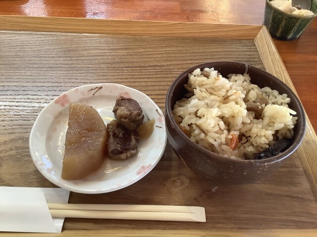 五目めしを茶碗いっぱいによそい大根とすじ肉の煮付けを!