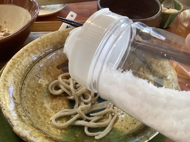 翁おすすめの食べ方蕎麦に足助の塩をかけて頂きます♪