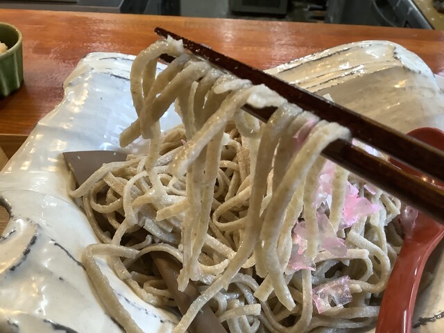 太めで短め、ちょっとごわっとした食感の田舎蕎麦風です。